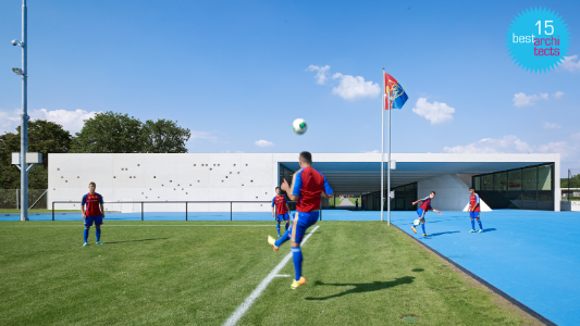 Der FCB Nachwuchs-Campus Basel wird mit dem Label 'best architects 15' prämiert.