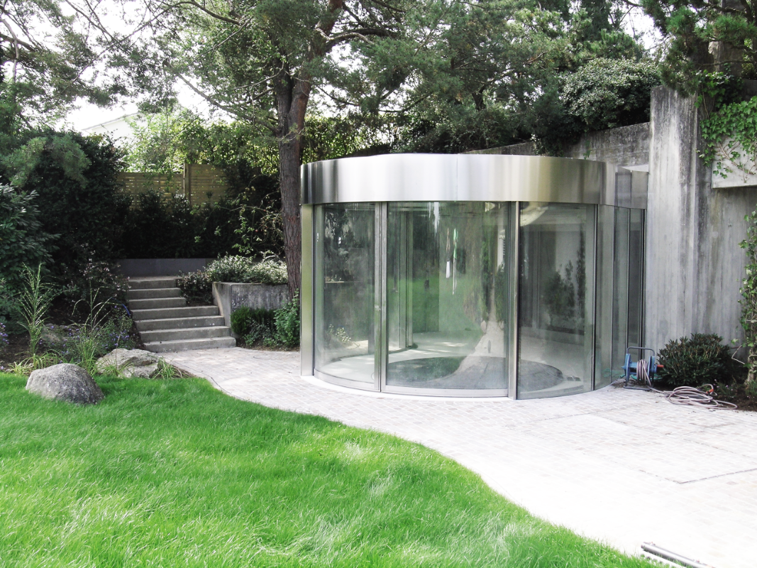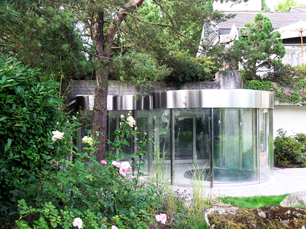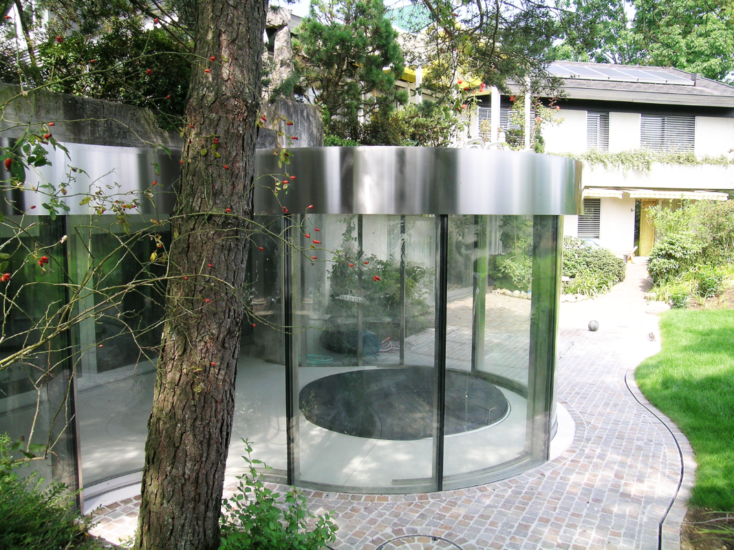 • Beim bestehenden Einfamilienhaus - 2001 bereits von Luca Selva Architekten erweitert - wurde im Gartengeschoss, dem Hallenbad vorgelagert, ein Anbau mit Jacuzzi entwickelt. Die organische Form kontrastiert die kristalline Form des Bestandes.