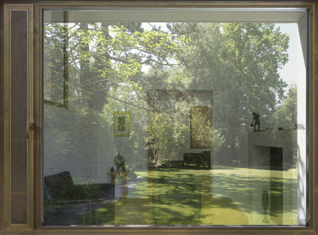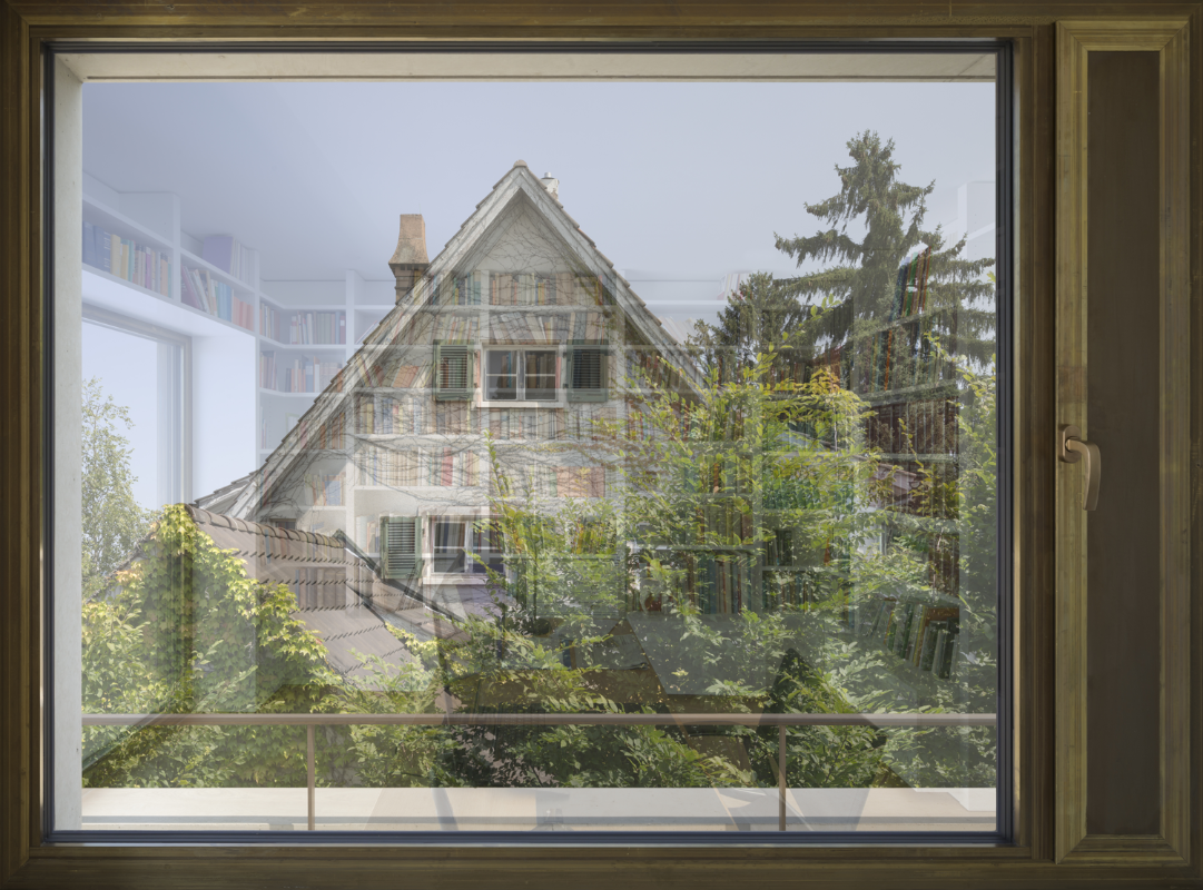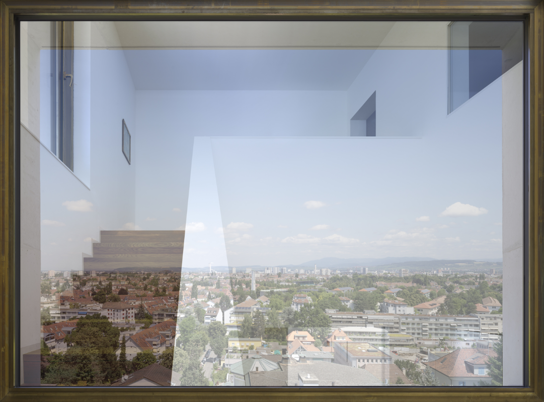 So wie sich die raumgreifende Aussicht auf der Bildebene verdichtet niederschlägt – wie auf einer Netzhaut –, ist über die Spiegelung in der grossformatigen Fensterscheibe jeweils auch der Innenraum präsent. Die simultane Darstellung von Aussenwelt und Innenwelt wird von der Reflexion der Galeriebesucher überlagert, hervorgerufen durch den Bildträger aus Glas. Eine Reflexion findet auch im übertragenen Sinn statt: Die Welt der Dinge und Erscheinungen trifft auf die Welt der Gedanken. Physisch Greifbares kann intellektuell begriffen werden, Assoziationen stellen sich ein, weiten den Horizont. Grundlegende Phänomene der Architektur werden sichtbar gemacht, etwa die Frage unterschiedlicher Massstäbe, die Wechselwirkung von Stadt und Innenraum, die Rolle des Benutzers, das Nebeneinander von Natur und Gebautem, Organischem und Geometrischem, das Thema der Blick- und Bewegungsführung, die Dimensionierung und Proportionierung von Räumen, das Verändern des Ortes und dessen Geschichte, ganz allgemein die Verbindung von Vergangenheit und Gegenwart.