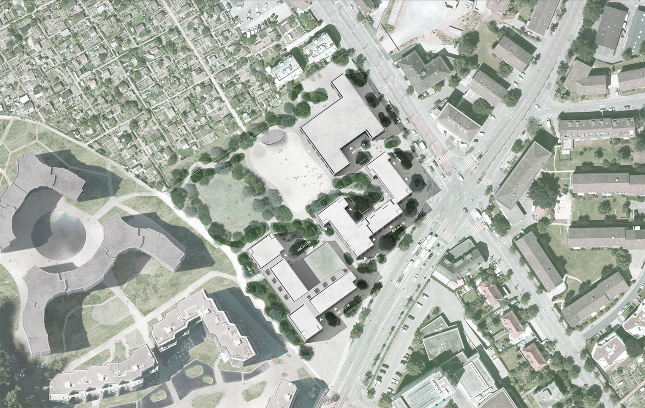 In diesem Projekt zeigen sich drei Baukörper kompakt und tief, erlauben Zwischenräume, verbinden Park mit Stadt und setzen das differenzierte Raumprogramm in diesem durch einen offenen Städtebau geprägten Quartier spezifisch um.