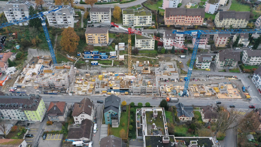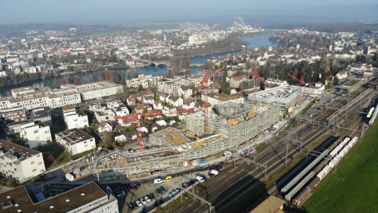 Zu Besuch in Riehen. Der Holzneubau wächst sichtbar und die Fertigstellung ist für Dezember 2025 geplant.