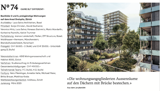 Zwei unserer Projekte wurden mit dem «best architects 26 award» prämiert: der Neubau der Genossenschaftswohnungen an der "Oberen Bernstrasse" in Luzern sowie der Umbau und die Sanierung der denkmalgeschützten Wohnsiedlung "Im Zimmerhof" in Basel.