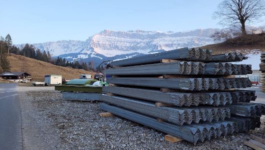 Re-Use und zirkuläres Bauen am Beispiel der Beschattung der Pausenterrassen für das Erlenmatt-Schulhaus. In Zusammenarbeit mit der Zirkular GmbH Basel haben wir die idealen Lamellen für die Beschattung in Form von wiederverwendeten Leitplanken gefunden. Es passt perfekt!